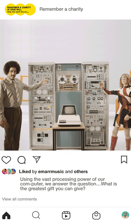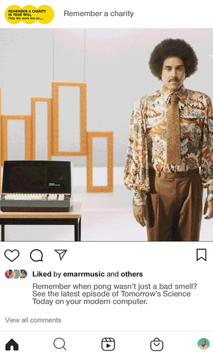 Remember a charity (RAC) is a charitable organisation that encourages people to leave a gift to a charity in their Will. They needed a social campaign that would cut through the social media clutter and get people thinking about their future. As a solution, we looked to the future by going into the past…we created a fictional TV series based on the 80’s ‘Tomorrow’s Science Today.’